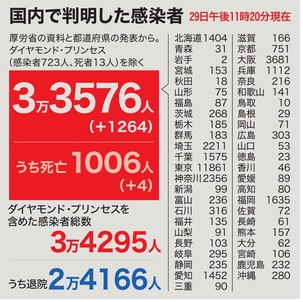 | ついに岩手でも感染 全国で1千人超、9府県が過去最多 朝日新聞の記事です。 全国で唯一、新型コロナウイルスの感染者が確認されていなかった岩手県で29日、初めて2人の感染者が確認された。 全国の1日の感染確認も初めて1千人を超え、大阪、愛知、福岡、京都、沖縄、岐阜、三重、栃木、徳島の9府県で過去最多を更新。 止まらぬ感染拡大に、首長たちは危機感を募らせる。 「誰でも感染する可能性がある。3月、4月を上回る流行がいま起きている」 午後8時から岩手県庁で開かれた緊急記者会見。 達増拓也知事は厳しい現状にあるとの認識を示しつつ、感染への注意と感染者を批判することのないよう県民に呼びかけた。 岩手県などによると、感染した2人は盛岡市の40代の男性と宮古市の30代の男性。 盛岡市の男性は、22日に関東地方のキャンプ場に行き、友人3人と同じテントに宿泊。 26日に帰って来たという。 28日に友人の1人が陽性と判明したため、29日にPCR検査を受けた。 キャンプ場は東京都ではないという。(以下、省略) 全国ではついに1千人を超えて、1264人となりました。 また岩手県で初めて感染者が出ました。 東京都の感染者は、250人でしたが500人になるのではないかと心配しております。 |