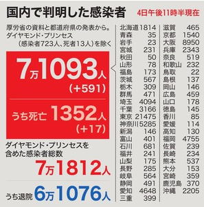| 全国で591人の感染確認 東京・神奈川は100人超え 朝日新聞の記事です。 新型コロナウイルスの国内感染者は4日午後11時半現在で、新たに591人が確認された。 全国の新規感染者数は8月22日から2週間連続で千人を下回っている。 重症者数も1日(234人)から減り続け214人になった。 この日、17人が亡くなった。(以下、省略) 世界的に減少傾向にあるようです。 東京は136人で、全国の23%でした。 死亡者が17人だったのですが、死亡者が多いのが気になります。 |