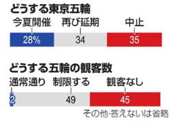 | 五輪「観客なしで」45%「制限」49% 朝日世論調査 朝日新聞の記事です。 10、11日に朝日新聞社が実施した全国世論調査(電話)で、東京五輪・パラリンピックの観客数をどうするのがよいか尋ねたところ、「制限して行う」は49%、「観客なしで行う」は45%だった。 「通常通りの観客数で行う」は2%どまりだった。 東京五輪・パラリンピックの観客については、政府や国際オリンピック委員会(IOC)などが3月に、海外在住の一般観客の受け入れ断念で合意した。(以下、省略) 通常通り実施は2%のようです。 無理してやることはないと思いますが、本部では無観客でも実施するようです。 私はボランティアとして参加の予定ですが、どのようになるのか見守る以外にありません。 |