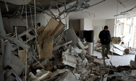 ![]() ロシア軍の攻撃を受け、自宅を破壊されたコンスタンチン・リシュクさん。 同様に壊された隣人の部屋を見回っていた =2022年4月6日、ウクライナ・キーウ、竹花徹朗撮影 |
