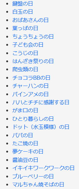 今日は何の日 (出典 雑学ネタ帳)![]() ![]() ![]() ![]() ![]() 世界猫の日(8月8日 記念日) アメリカに本部を置き、世界最大の動物愛護団体である国際動物福祉基金(International Fund for Animal Welfare:IFAW)が2002年(平成14年)に制定。英語表記は「International Cat Day」または「World Cat Day」。 理由は不明だが日付は8月8日で、イエネコから野生のヤマネコまで、ネコの保護について考える日とされている。イギリスでは、「ナショナル・キャット・アワード」が開催され、その年で最も注目されたネコが表彰される。 ![]() 猫 日本では猫の鳴き声「ニャン(2)ニャン(2)ニャン(2)」と読む語呂合わせから2月22日が「猫の日」となっている。その他、「猫の日」は世界各国で制定されており、ロシアは3月1日となっており、アメリカは10月29日を「National Cat Day」、ヨーロッパの多くの国は2月17日を「World Cat Day」としている。 |