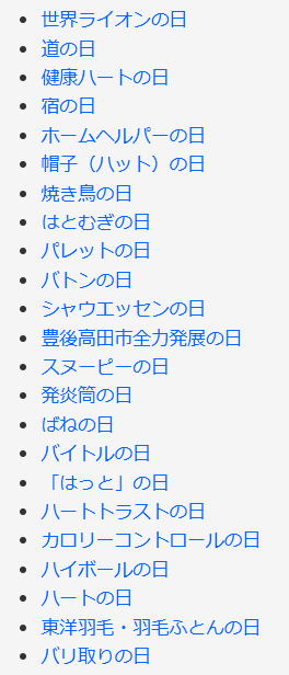 今日は何の日 (出典 雑学ネタ帳)![]() ![]() ![]() 世界ライオンの日(8月10日 記念日) 南アフリカのヨハネスブルグに本部を置く非営利団体「African Parks」が2013年(平成25年)に制定。英語表記は「World Lion Day」。 食物連鎖の頂点に立っているライオンが、密かに絶滅の危機にさらされていることをより多くの人に知ってもらい、ライオンの保護を喚起することが目的。 ![]() ライオン ライオンは国際自然保護連合(IUCN)による保存状況評価で絶滅危惧種(VU)に指定されている。ライオンを襲う危機は様々で、生息地であるサバンナの減少やレジャー目的のハンティングなどがある。 ライオンについて ライオン(lion)は、食肉目ネコ科ヒョウ属に分類される食肉類。別名はシシ(獅子)。オスであれば体重は250キログラムを超えることもあり、ネコ科ではトラに次いで2番目に大きな種である。 現在の主な生息地はサハラ砂漠より南の地域サブサハラであるが、インドのジル国立公園のインドライオンは絶滅が危惧されている。北アフリカや西南アジアでは有史時代に姿を消している。 世界的に「百獣の王」として有名。アフリカでは、影のできるアカシアの木がまばらに生えているサバンナの草原地帯でライオンたちを見ることができる。茂みや森に棲む場合、砂漠で見られる場合もある。 オスの成獣は頭部から頸部にかけて、たてがみが発達するのが特徴的である。野生下では南アフリカ共和国の南部や東部で、標高1000メートル以上の比較的寒い環境に生息する個体群でたてがみが発達する傾向がある。たてがみの色の濃さはメスにアピールする上で重要となる。 「leo」は分類の種小名でも使用され、ラテン語で「ライオン」を意味する。行動する範囲において、吠えたり尿を撒いて臭いをつけることで縄張りを主張する。肉食であり、狩りは日が昇る前の夜間によく行われる。 |