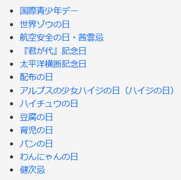 今日は何の日 (出典 雑学ネタ帳)![]() 国際青少年デー(8月12日 記念日) 1999年(平成11年)の国連総会で決定。国際デーの一つ。英語表記は「International Youth Day」。 1999年のこの日、リスボンで世界青少年担当閣僚会議が閉幕した。目的はアースデイなど他の政治的な記念日と同じように、既知の危険にさらされた人々を取り巻く一連の文化的・法的問題へ注意を促すことである。 |