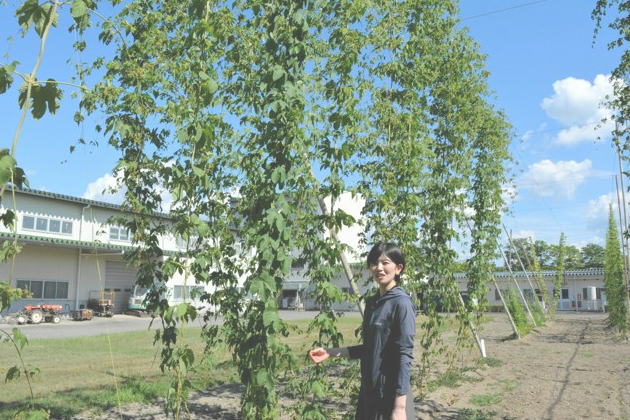 ![]() 高温耐性を強めたホップ品種「ザーツ」(手前)のそばに立つキリンの研究者、今堀莉子さん。 熱処理していない苗(奥)と比べ、葉が生い茂り、草丈も伸びている。 ザーツは何百年も前からビールに使われる世界的な品種 =2025年7月28日、岩手県奥州市、橋田正城撮影 |