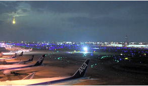 ![]() 福岡空港のライブカメラに映った火球とみられる光(左上) =2025年8月19日午後11時8分ごろ、福岡市博多区、九州朝日放送提供 |