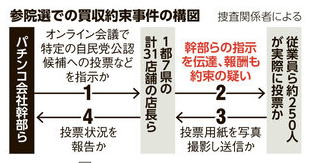 | 「投票したらお金」相次ぐ情報 パチンコ会社への捜査で浮上した事件 朝日新聞の記事です。 7月の参院選の比例区から自民党公認で立候補した候補者をめぐる選挙違反事件の舞台として浮上したのは、あるパチンコ店運営会社だった。 1都7県の警察が捜査に乗り出し、立件が視野に入っている容疑者は300人近くにのぼるという。 大規模な公職選挙法違反疑いがある事件の舞台裏に迫った。(以下、省略) 警察当局が捜査を進めると、7月2〜3日に開かれたデルパラ社内のオンライン会議で、同社幹部らから約30店の店長に対し、特定の候補者名を挙げて「従業員が投票したら手当を出す」という趣旨の指示があった疑いが浮上した。 |