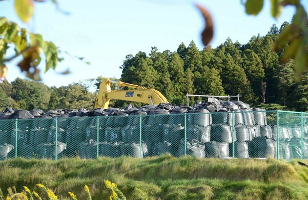 ![]() 中間貯蔵施設で山積みにされた、除染土を詰めたフレコンバッグ=2021年10月20日、福島県双葉町 |