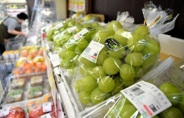 ![]() 店頭に並ぶシャインマスカット=2024年9月25日、東京都江東区のたつみチェーン豊洲店、渡辺洋介撮影 |