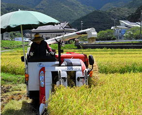 ![]() 九州や四国、南関東などでは早場米の収穫が始まっている =2025年8月5日午前11時40分、熊本県天草市、座小田英史撮影 |