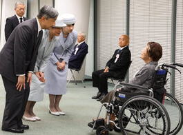![]() 長崎原爆資料館で被爆者と懇談する天皇、皇后両陛下と愛子さま =2025年9月12日午後、長崎市、代表撮影 |