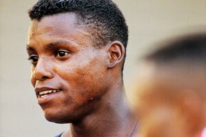 ![]() 1991年東京大会の男子400メートルリレーで世界新を記録して優勝した米国代表のカール・ルイス |