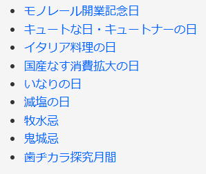 今日は何の日 (出典 雑学ネタ帳)![]() モノレール開業記念日(9月17日 記念日) 東京オリンピックが開催された1964年(昭和39年)のこの日、浜松町〜羽田空港間の「東京モノレール」(東京モノレール羽田線)が開業した。 ![]() 東京モノレール 全長13.1km、約15分で運賃は大人250円・小児130円。日本初の旅客用モノレールだった。東京オリンピックの開催で、日本国内外からの羽田空港利用客の都心へのアクセスの改善を目的として建設された。東京オリンピック開会式は10月10日で、その前のこの日の開業となった。記念日は開業を記念して東京モノレール株式会社が制定した。 ![]() 東京モノレール モノレールについて モノレール(monorail)とは、1本の軌条(レール)により進路を誘導されて走る軌道系交通機関。語源は「一つのもの」を意味する接頭語「mono」と「軌道」を意味する「rail」、つまり「単軌鉄道」(たんきてつどう)である。 遊覧用モノレールとしては、上野動物園に作られた懸垂式の「上野動物園モノレール」(上野懸垂線)が日本で最初だった。上野動物園モノレールは、1957年(昭和32年)12月17日に開業し、経年劣化を理由として、2019年(令和元年)11月1日から運転が休止されている。 |