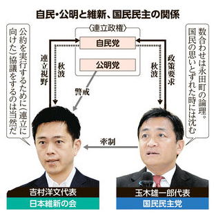 | 自民総裁選にらみ動く 維新は連携示唆で揺さぶり、国民民主は対抗策 朝日新聞の記事です。 自民党総裁選の投開票(10月4日)が近づくなか、連携相手と目される2野党の動きが活発になっている。 自公連立政権への参加を視野に入れる日本維新の会は、看板政策の「副首都」構想や憲法9条の改正案などをまとめ、自民に揺さぶりをかける。 一方、国民民主党は自民と維新の接近に警戒を強め、対抗策を打ち出し始めた。(以下、省略) 自民との連立をにらんでの構想です。 維新の会はずいぶんと深く検討しているようです。 |