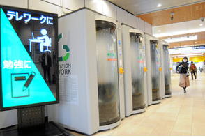 ![]() 駅構内に設置されたテレワークブース=20年 |
