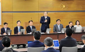 ![]() 公明党の中央幹事会であいさつする斉藤鉄夫代表(中央) =2025年10月9日午前10時36分、東京都新宿区、笠井哲也撮影 |