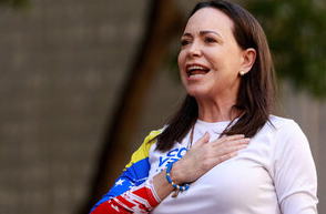 ![]() ベネズエラ・カラカスで2025年1月9日、マドゥロ大統領の3期目の就任式を前に、 抗議活動で訴えるベネズエラの反体制派活動家マリア・コリナ・マチャド氏=ロイター |