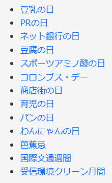 今日は何の日 (出典 雑学ネタ帳)![]() 豆乳の日(10月12日 記念日) 東京都千代田区二番町に事務局を置き、豆乳についての広報活動や豆乳資格検定試験などを実施している日本豆乳協会が2008年(平成20年)に制定。 日付は10月は国民の祝日「体育の日」(現:スポーツの日)もあり、健康や体のケアに気を付ける月であることから。12日は「とう(10)にゅう(2)」(豆乳)と読む語呂合わせから。 豆乳を飲み続けることで、体の中から美しさを引き出してもらい、豆乳市場の活性化を図ることが目的。記念日は一般社団法人・日本記念日協会により認定・登録された。 ![]() 日本豆乳協会 この日を記念して、日本豆乳協会では全国の高等学校を対象とした「スポーツ×豆乳キャンペーン」を実施している。10月中に、学校行事として体育祭やスポーツイベントを実施する学校を対象に、学校に在籍する生徒の人数分の豆乳を提供する。 スポーツに親しむ少年少女たちの「スポーツや運動後に飲む豆乳」をすすめ、豆乳の良質な植物性たんぱく質で、筋肉や骨をより丈夫にしてもらおうという考えである。 豆乳について 豆乳は、大豆を水に浸してすりつぶし、水を加えて煮つめた汁を漉した飲料である。別名ソイミルク。発祥は中国で、パオズ(包子)などの朝食とともによく飲まれており、暖かい豆乳に砂糖を加えた甘い豆乳などがある。 豆乳 牛乳に似た外観と食味があり、大豆特有の青臭さがある。この風味を好む人も多いが、飲みづらいと感じる人もいるため、果汁を加えたり砂糖などで甘みを加えた飲料も販売されている。なお、煮詰めた汁を濾して残った繊維質のものがおからである。 スーパーやコンビニなどで売られている豆乳(類)商品は、JAS規格で「(無調整)豆乳」「調製豆乳」「豆乳飲料」の3種類に分かれている。 大豆を絞った乳白色の液状そのままの豆乳が「無調整豆乳」。この無調整豆乳に少々の塩や砂糖などで飲みやすく調整したものが「調製豆乳」。この調製豆乳に果汁や紅茶(フレーバー)などで味付けしたものが「豆乳飲料」である。 |