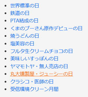 今日は何の日 (出典 雑学ネタ帳)![]() 世界標準の日(10月14日 記念日) 国際標準化機構(International Organization for Standardization:ISO)と国際電気標準会議(International Electrotechnical Commission:IEC)が1960年(昭和35年)に制定。 記念日の英語表記は「World Standards Day」または「International Standards Day」。 1946年(昭和21年)のこの日、25ヵ国がイギリス・ロンドンに集まって、標準化を促進するための世界的な組織を創設することを決定した。この日は世界標準を策定した人たちに感謝し、労をねぎらう日である。また、標準の管理者・業界・消費者に対して、世界経済の標準化の重要性について意識を高めるための日である。 この日を含む10月1日〜31日までの一ヵ月間を「工業標準化月間」として各国で標準化の強化活動が行われる。 日本では、1954年(昭和29年)に「工業標準化振興週間」を開始し、1994年(平成6年)から「工業標準化推進月間」に改めた。また、2019年(平成31年)から「産業標準化推進月間」に改め、普及活動のため、各種広報・表彰・講演会の開催などを実施している。 ![]() 「産業標準化推進月間」ポスター 世界標準について 世界標準(international standard)は、各国の様々な規格や基準を世界で統一化することで円滑な国際交易をはかるためのもので、国際工業規格・国際会計基準などがある。交通信号機が緑・黄・赤の3色となっている事例や、船舶や航空機が右側通行に統一されていることなどが世界標準の例である。 日本では国際標準から派生して生まれた比喩的な表現の言葉にグローバル・スタンダード(global standard)がある。グローバル・スタンダードという言葉が、日本で多用されるようになったのは1997年(平成9年)以降であり、日本国外ではあまり使用されない和製英語と言われている。 |