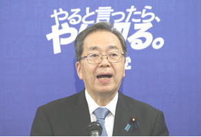![]() 2025年10月10日、自民党の高市早苗総裁との会談後、記者会見で連立政権からの 離脱を表明する公明党の斉藤鉄夫代表=国会内、岩下毅撮影 |