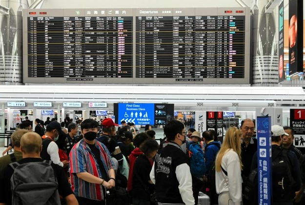 ![]() 旅客で混み合う国際線の出発階=2025年4月25日、成田空港 |