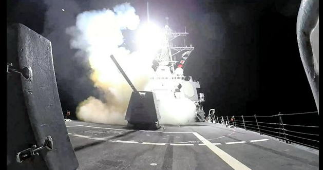 ![]() 2024年2月3日、イエメンの反政府勢力フーシの拠点とされる標的に向けて米軍が 艦船から発射した巡航ミサイル「トマホーク」(米中央軍提供)=ロイター |