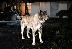 ![]() 鉄雲は体重43キロ、体高60〜70センチと大柄の秋田犬だ =2025年10月20日午後5時42分、宮城県栗原市若柳川南、福留庸友撮影 |