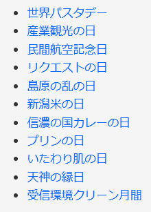 今日は何の日 (出典 雑学ネタ帳)![]() 世界パスタデー(10月25日 記念日) 1995年(平成7年)のこの日、イタリアのローマで「第1回世界パスタ会議」が開催された。これを記念して1998年(平成10年)に制定。英語表記は「World Pasta Day」。 この日には、世界各国でパスタの魅力を伝える様々なイベントが開催される。また、EUやイタリアのパスタ製造業者連合会などが合同でパスタの販売促進キャンペーンを実施し、イタリアNo.1パスタブランド「Barilla(バリラ)」ではこの日にパスタを食べてもらおうとキャンペーンを展開していた。 ![]() 世界パスタデー パスタについて パスタ(pasta)は、日本語の「麺類」とほぼ同義の概念をもつイタリア語で、スパゲッティ、ペンネ、ラザニアなどを含む。イタリア料理の主要な要素の一つ。主な原料は小麦粉(特にデュラム小麦)で、他に水、塩、鶏卵などが用いられる。 ![]() パスタは大きく分けると2種類に分類でき、スパゲッティに代表される麺状のロングパスタと、マカロニに代表される小型のショートパスタがある。他に団子状や板状のものもある。 イタリアには地方独特のものも含め650種類ものパスタがあると言われており、毎年のように新しい種類が発表されている。乾燥パスタが多く市販されているが、家庭で生パスタを手打ちすることも出来る。 イタリアでは古くからパスタが食べられてきた。現在見られるような乾燥パスタが普及したのは、16世紀半ばにナポリで飢饉に備えるために保存食が必要になったことがきっかけであったとされる。また、乾燥パスタの普及により民衆がパスタを日常的に食べるようになった。 |