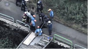 ![]() 駆除されたクマを確認する警察官ら=2025年10月24日、秋田県東成瀬村、秋田朝日放送提供 |