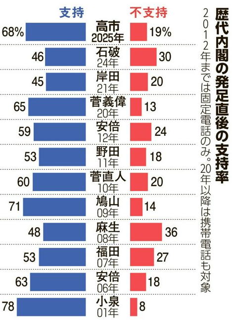 | 高市内閣の支持率68% 2001年以降3番目の高さ 朝日世論調査 朝日新聞の記事です。 高市早苗内閣の発足を受け、朝日新聞社は10月25、26日、全国世論調査(電話)を実施した。 内閣支持率は68%で、不支持率は19%だった。 発足直後の支持率としては、2001年の小泉純一郎内閣以降、3番目に高かった。(以下、省略) 高石氏の支持率が3番目に高かったという。 弱そうに見える体格ですが、精神力は強うようです。 |
