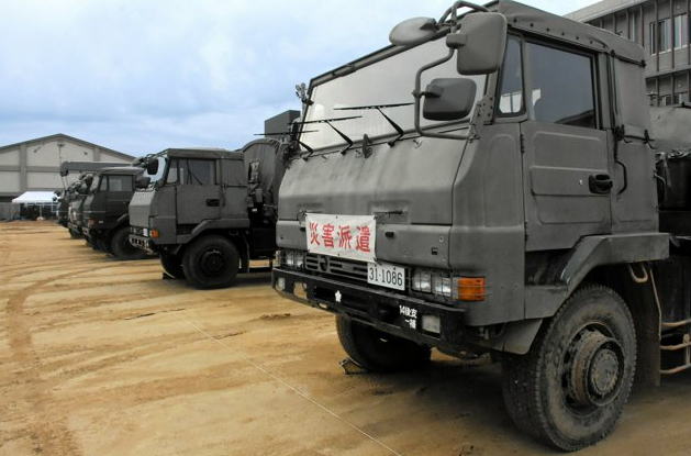 ![]() 能登半島地震対応のため、災害派遣された自衛隊の車両 =2024年3月19日午後4時23分、石川県輪島市、土井良典撮影 |