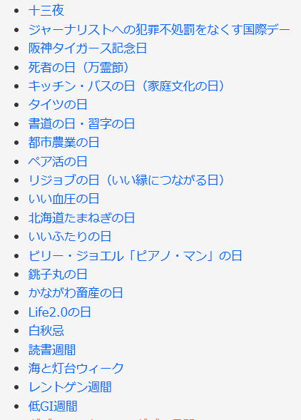 今日は何の日 (出典 雑学ネタ帳)![]() 十三夜(10月・11月 年中行事) 「十三夜(じゅうさんや)」とは、旧暦の毎月十三日の夜のことであるが、特に旧暦9月13日〜14日の夜「九月十三夜」を意味する。 ![]() 満月 九月十三夜は、旧暦8月15日〜16日の夜「八月十五夜」の月「中秋の名月(ちゅうしゅうのめいげつ)」に次いで月が美しいとされ、「後の月(のちのつき)」とも呼ばれる。この時期は秋晴れになることも多い。 十三夜は日本独自の風習と言われている。平安時代の919年(延喜19年)に、醍醐(だいご)天皇が平安京の清涼殿で月見の宴を催されたのが、九月十三夜の始まりとされる。 八月十五夜の月は「芋名月(いもめいげつ)」と呼ばれるのに対して、九月十三夜は季節の風物として豆(枝豆)や栗を供えることから、この夜の月は「豆名月(まめめいげつ)」や「栗名月(くりめいげつ)」と呼ばれる。 美しい月を愛でるとともに秋の収穫に感謝する行事であり、月見団子は十三夜にちなんで13個または3個を供える。その他にも収穫された旬の果物や野菜を供え、魔除けにもなるススキなどを飾る。 十五夜と十三夜の両方の月を祝い、どちらか片方の月見しかしないことを「片月見(かたつきみ)」や「片見月(かたみつき)」と呼び、縁起が悪いとも言われる。また、旧暦10月10日〜11日の夜「十日夜(とおかんや)」と合わせて計三回の月見ができると、とても縁起が良いと言われる。 |