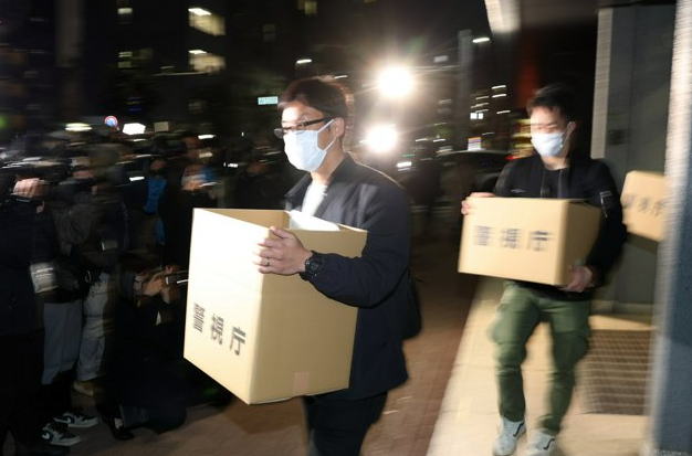 ![]() 「マッサージ店」から押収物を運び出す警視庁の捜査員ら =2025年11月4日午後6時7分、東京都文京区、関田航撮 |
