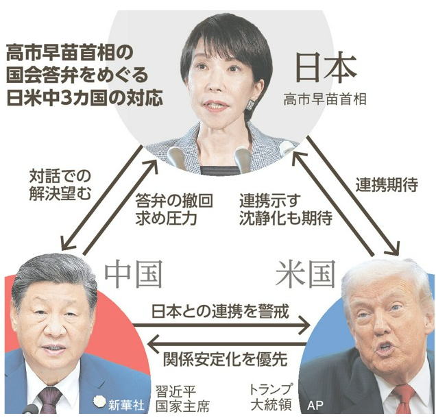| トランプ氏、米中電話協議を要請か 日本への「伝達役」を担った訳は 朝日新聞の記事です。 台湾有事に関する高市早苗首相の国会答弁をめぐり日中の対立が深まる中で、トランプ米大統領が両国首脳との対話に乗り出した。 ただ、トランプ氏の真意は読み切れず、日本側の事態打開の見通しは立っていない。(以下、省略) 本日の新聞の1面のトップ記事です。 トランプ氏がどのように高市氏と関わっていくのかわかりません。 中国が簡単に和解をすることはとても考えられません。 |
