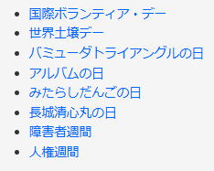 今日は何の日 (出典 雑学ネタ帳)![]() 国際ボランティア・デー(12月5日 記念日) 1985年(昭和60年)12月の国連総会により制定。国際デーの一つ。英語表記は「International Volunteer Day:IVD」。 世界中の経済と社会開発の推進のため、ボランティア活動の貢献に対する認識を高め、社会のあらゆる層からより多くの人々が、国内外においてボランティア活動に参加できる機運を高める日。この日には、世界各地でシンポジウムの実施、あるいはフェスティバルや表彰、展示会、募金、ワークショップなど、様々な取り組みが行われる。 ![]() 国際ボランティア・デー 国連はボランティア活動の認識を高め、コミュニケーションのネットワーク構築などを目的として、2001年(平成13年)を「国際ボランティア年」(International Year of Volunteers:IYV)に制定した。同年の国連総会では、国連と各国政府がボランティア活動を支援する方法に関する一連の勧告を採択し、それらを広く普及させることを求めた。 ボランティアとは、一般的に、自発的に他人・社会に奉仕する人またはその活動を意味する。ボランティア活動の基本理念は、公共性・自発性・先駆性である。 日本では、1995年(平成7年)の阪神・淡路大震災において、全国から大勢のボランティアが被災地に駆けつけたことから、同年は「ボランティア元年」とも呼ばれる。また、震災が起きた1月17日は「防災とボランティアの日」となっている。 |
