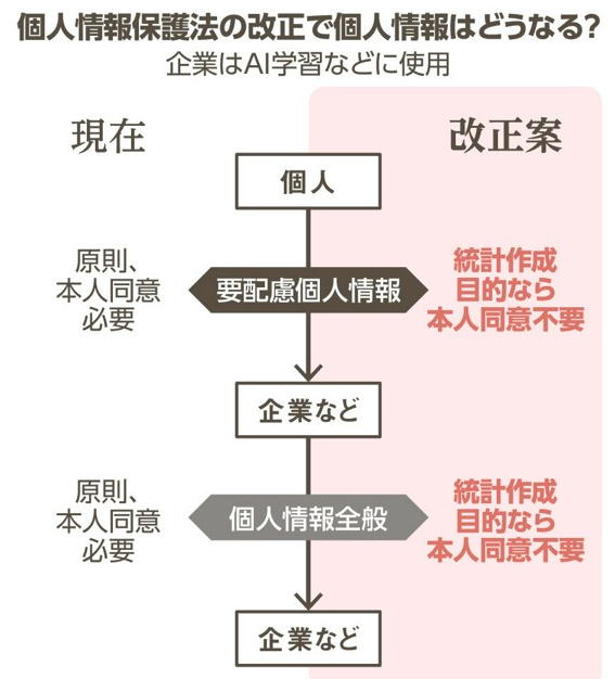 | AI学習に個人情報、統計目的なら同意不要 経済界の要望受け改正案 朝日新聞の記事です。 政府がまとめた個人情報保護法改正案の内容が4日、判明した。 病歴や犯罪歴などの「要配慮個人情報」について、統計情報の作成が目的の場合は本人同意なしで取得できるようにする。 経済界の要望を受け、企業などがAI(人工知能)の開発を進めやすくなるよう規制を緩和する。 一方、悪質な違反に対する課徴金制度を新設する。(以下、省略) 本日の新聞の1面のトップ記事です。 個人情報のあり方が検討されております。 ものによっては同意が不要というものです。 |