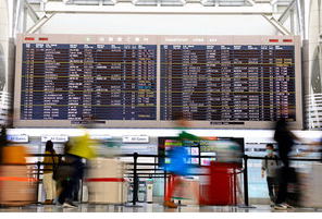 ![]() 成田空港を行き交う人びと=2023年4月、長島一浩撮影 |