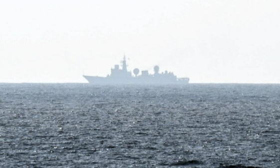 ![]() 中国海軍・ドンディアオ級情報収集艦(艦番号798) =2025年9月11日、鹿児島県・種子島沖、海自護衛艦「かが」から、土居貴輝撮影 |