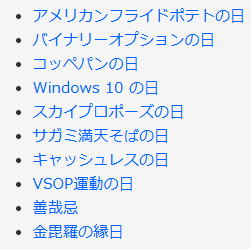 今日は何の日 (出典 雑学ネタ帳)![]() ![]() 110番の日(1月10日 記念日) 警視庁が1985年(昭和60年)に制定し、翌1986年(昭和61年)から実施。 日付は警察機関への緊急通報用電話番号の110番にちなむ。 110番に関心を持ってもらい、また110番の適切な利用を推進することが目的。この日には警視庁での通信指令センターの一般公開など、全国の警察において関連のキャンペーンが行われる。 ![]() パトカー 110番は戦後の連合国軍最高司令部(GHQ)の勧告で1948年(昭和23年)10月1日に、東京などの8大都市で始められた。東京では最初から110番だったが、大阪・京都・神戸では1110番、名古屋では118番など地域によって番号が異なっており、全国で110番に統一されたのは1954年(昭和29年)のことである。 電話番号が110番になった理由としては、覚えやすい番号であること、誤報が少ないように番号は3桁であること、黒電話のストッパーまでの距離が短い「1」を多くしたことが挙げられる。 黒電話 また、緊急時の消防への電話番号である119番の「9」と同様に、誤報を防ぐためと落ち着くためにダイヤルが一番長い「0」が設定された説がある。 110番を受けた受理台は、直ちに状況を聴取するが、必要に応じ指令台でも同時に通話聴取が可能で、現場周辺を巡回中のパトロールカー(略称:パトカー)に警察無線で指令を出すことが可能である。 関連する記念日として、11月9日は「119番の日」となっている。 |