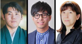 ![]() 左から芥川賞に決まった畠山丑雄さん、鳥山まことさん、直木賞に決まった嶋津輝さん |
