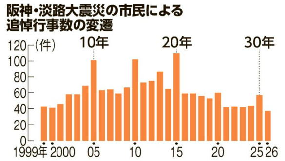 | 震災31年、追悼行事は過去最少 「風化の兆し」にあらがう動きも 朝日新聞の記事です。 震災の記憶や教訓はどうしたら伝えていけるのか――。 阪神・淡路大震災から31年となった今年、1月17日前後に開かれる市民による追悼関連行事の件数が過去最少になったという。 危機感を募らせる関係者らは、震災を知らない世代への継承を試行錯誤している。(以下、省略) 追悼行事が減少するのは自然の動きではないでしょうか。 そのようにして段々と忘れられていきます。 |