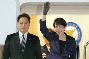 ![]() 政府専用機で米国へ向けて出発する高市早苗首相(右)。 隣は同行する尾崎正直官房副長官 =2026年3月18日午後9時51分、羽田空港、浅野哲司撮影 |