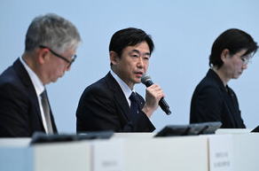 ![]() 記者の質問に答えるKDDIの松田浩路社長(中央)。 奥は最勝寺奈苗専務。手前は特別調査委員会委員長の名取俊也弁護士 =2026年3月31日午後5時23分、東京・六本木、相場郁朗撮影 |