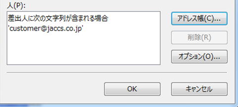 そこで有能な方法があります。 受信したメールを予め作成しておいたホルダーに振り分けるように設定しておくと、パソコンがその人のフォルダーに自動的に振り分けてくれます。 相手のホルダーを、ダブルクリックするだけで内容を確認することができます。 作成方法 ●Windows Live Mailの場合 ①フォルダータブをクリック → メッセージルールをクリック すると下図の画面が出るので、新規作成(N)(赤矢印)をクリック ![]() ②すると下図の画面が出るので、差出人ユーザーが含まれる場合の□にチェックを入れる ![]() ③すると画面に下方に下図の画面が出るので、ユーザーが含まれるをクリックする ![]() ④すると下図のような画面が出るので、矢印の窓へ重要な方のアドレスを入力する アドレス帳にアドレスがある場合は、アドレス帳(C)をクリックする ![]() ⑤すると下図のような画面が出るので、その方のアドレスをクリックして矢印の宛先(T)をクリックする(アドレスの一部は水色で隠してあります)。 すると、その方のアドレスが窓に入力されるので、OKをクリックする ![]() ⑥すると下図のようにその方のアドレスが表示されるので、OKをクリックする ⑦あらわれた中の画面の一番上の、「指定のホルダー」に移動をするにチェックをいれる。 ①.Outlook 2007を起動し、画面左下の「メール」をクリックし、分類したいメールがあるフォルダ(受信トレイなど)を表示します。 ![]() ②移動したいメールを選択して右クリックし、表示された一覧から「仕分けルールの作成」をクリックします ![]() ③「仕分けルールの作成」が表示されたら、「次の条件に一致する電子メールを受信したとき」欄の任意の条件にチェックを入れます。 ここでは例として、「差出人が次の場合」にチェックを入れます。 ![]() ④続けて、「実行する処理」欄の「アイテムをフォルダに移動する」にチェックを入れるか、「フォルダの選択」をクリックします。 ※ どちらを選択しても、手順5のフォルダを選択する画面が表示されます。 ![]() ![]() ⑤「仕分けルールと通知」が表示されたら、移動先のフォルダをクリックし、「OK」をクリックします。 ここでは例として、「ともだち」フォルダを移動先に指定します。 ![]() 補足 移動先のフォルダを新規で作成したい場合は、「仕分けルールと通知」で画面右側の「新規作成」をクリックして、任意の名前を付けて作成します。 ⑥「仕分けルールの作成」に戻ったら、移動先のフォルダ名を確認し、「OK」をクリックします。 ![]() ⑦「仕分けルール"任意のルール名"が作成されました。」というメッセージが表示されたら、「OK」をクリックします。 ![]() 補足 今すぐに作成したルールで仕分けを実行する場合は、「現在のフォルダにあるメッセージにこの仕分けルールを今すぐ実行する」にチェックを入れ、「OK」をクリックします。 ![]() ●Microsoft Office Outlook 20016の場合 ①画面左下のナビゲーションバーから「メール」をクリックし、分類したいメールがあるフォルダー(受信トレイなど)を表示します。 ※ アイコン表示になっている場合は、「 」をクリックします。![]() ②移動したいメールをクリックします。 リボンから「ホーム」タブをクリックし、「移動」グループの「ルール」をクリックして表示された一覧から「仕分けルールの作成」をクリックします。 ![]() ③「仕分けルールの作成」が表示されたら、「次の条件に一致する電子メールを受信したとき」欄の任意の条件にチェックを入れ、「実行する処理」欄の「アイテムをフォルダーに移動する」または「フォルダーの選択」をクリックします。 ここでは例として、条件に「差出人が次の場合」を選択します。 ![]() ④「仕分けルールと通知」が表示されたら、移動先のフォルダーをクリックし、「OK」をクリックします。 ここでは例として、「秋葉 四郎」フォルダーを移動先に指定します。 ![]() 補足 移動先のフォルダーを新規で作成したい場合は、「仕分けルールと通知」で画面右側の「新規作成」をクリックし、「新しいフォルダーの作成」が表示されたら、「名前」を入力し「OK」をクリックします。 ![]() ⑥「仕分けルール"(任意のルール名)"が作成されました。」というメッセージが表示されたら、「OK」をクリックします。 ![]() ※ 今すぐに作成したルールで仕分けを実行する場合は、「現在のフォルダーにあるメッセージにこの仕分けルールを今すぐ実行する」にチェックを入れ、「OK」をクリックします。 |