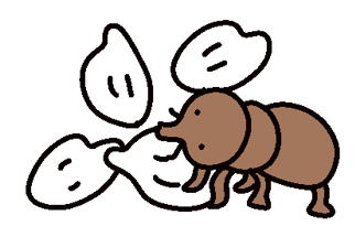 虫が米の外側の糠を舐めると、次は中の米を食べる。